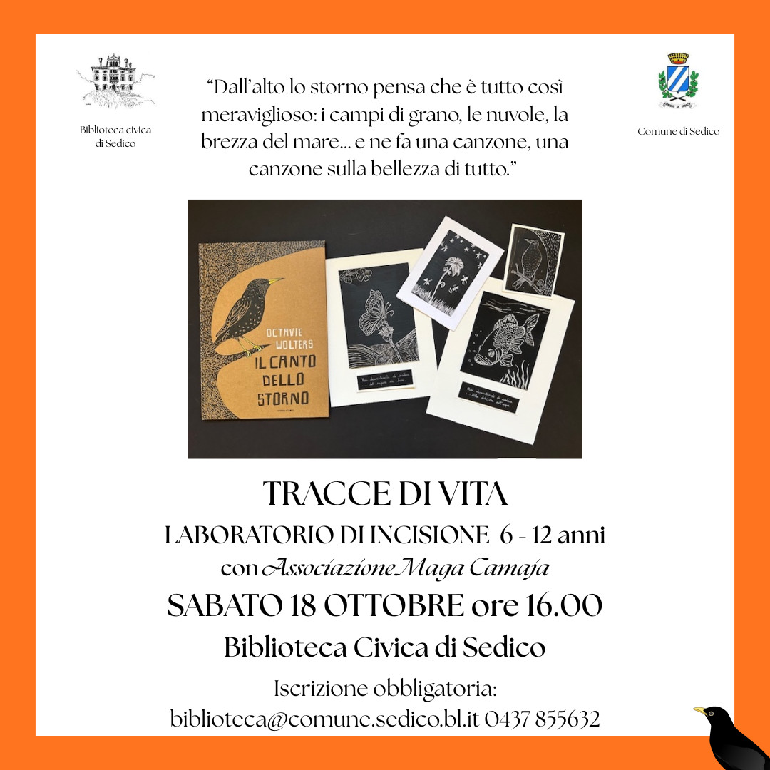 La Biblioteca Civica di Sedico, in collaborazione con l’Associazione Maga Camaja, propone un'attività creativa dedicata ai più giovani: il laboratorio artistico "Tracce di Vita", rivolto a bambini dai 6 ai 12 anni.